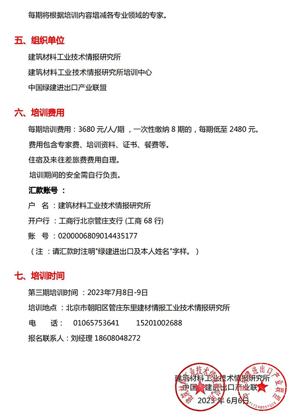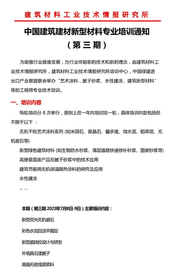 綠建國際報道:中國建筑建材新型材料專業培訓通知